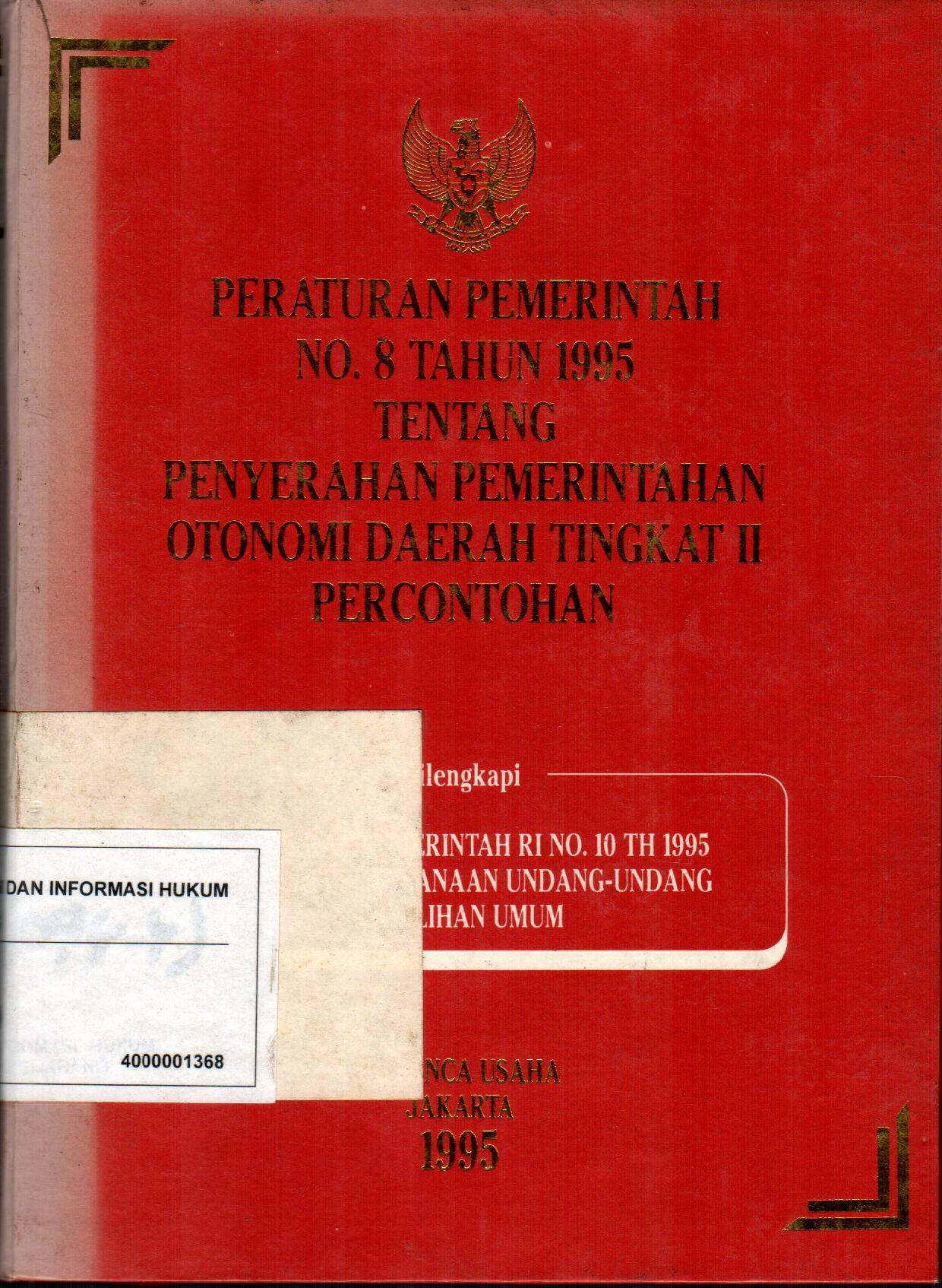 Peraturan Pemerintah No 8 Tahun 1995 Tentang Penyerahan Pemerintah Otonom Daerah Tingkat II Percontohan