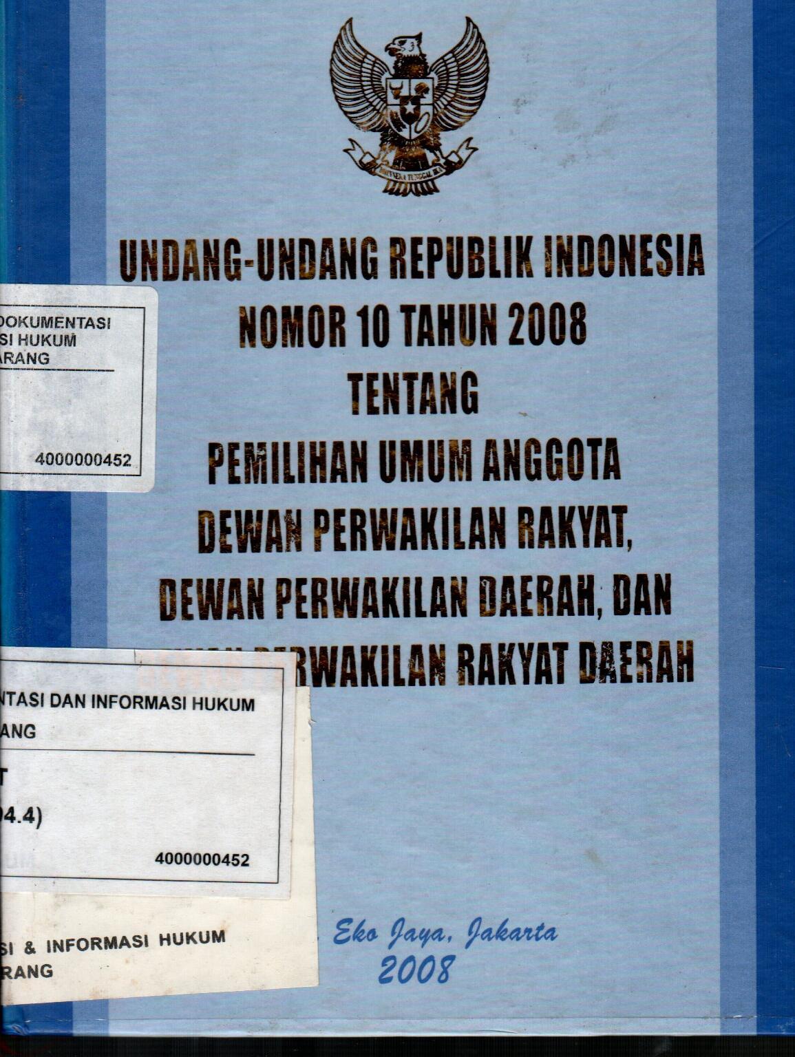 Undang-Undang Republik Indonesia Nomor 10 Tahun 2008