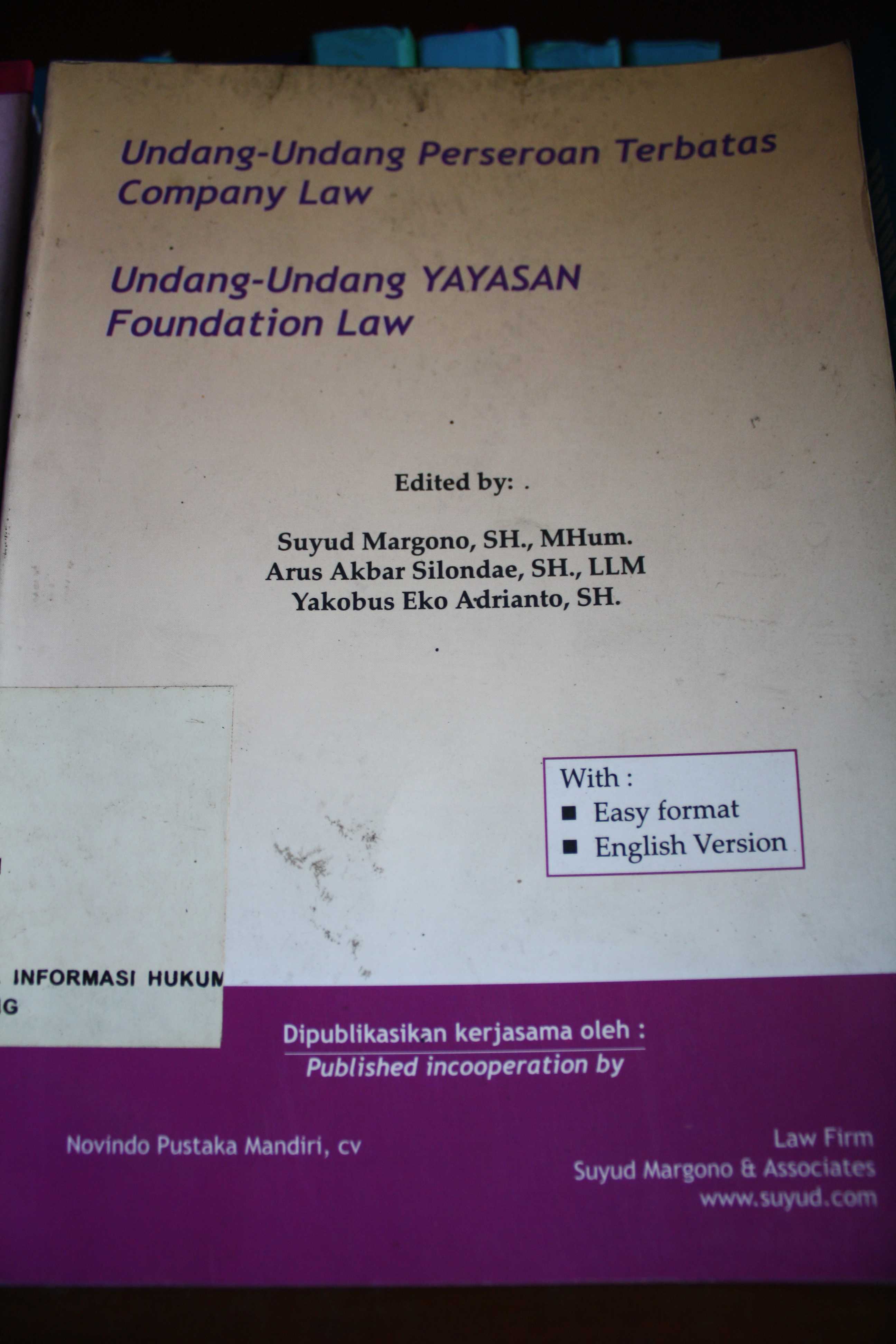 Undang - undang Perseroan Terbatas Company Law, Undang - undang Yayasan Foundation Law