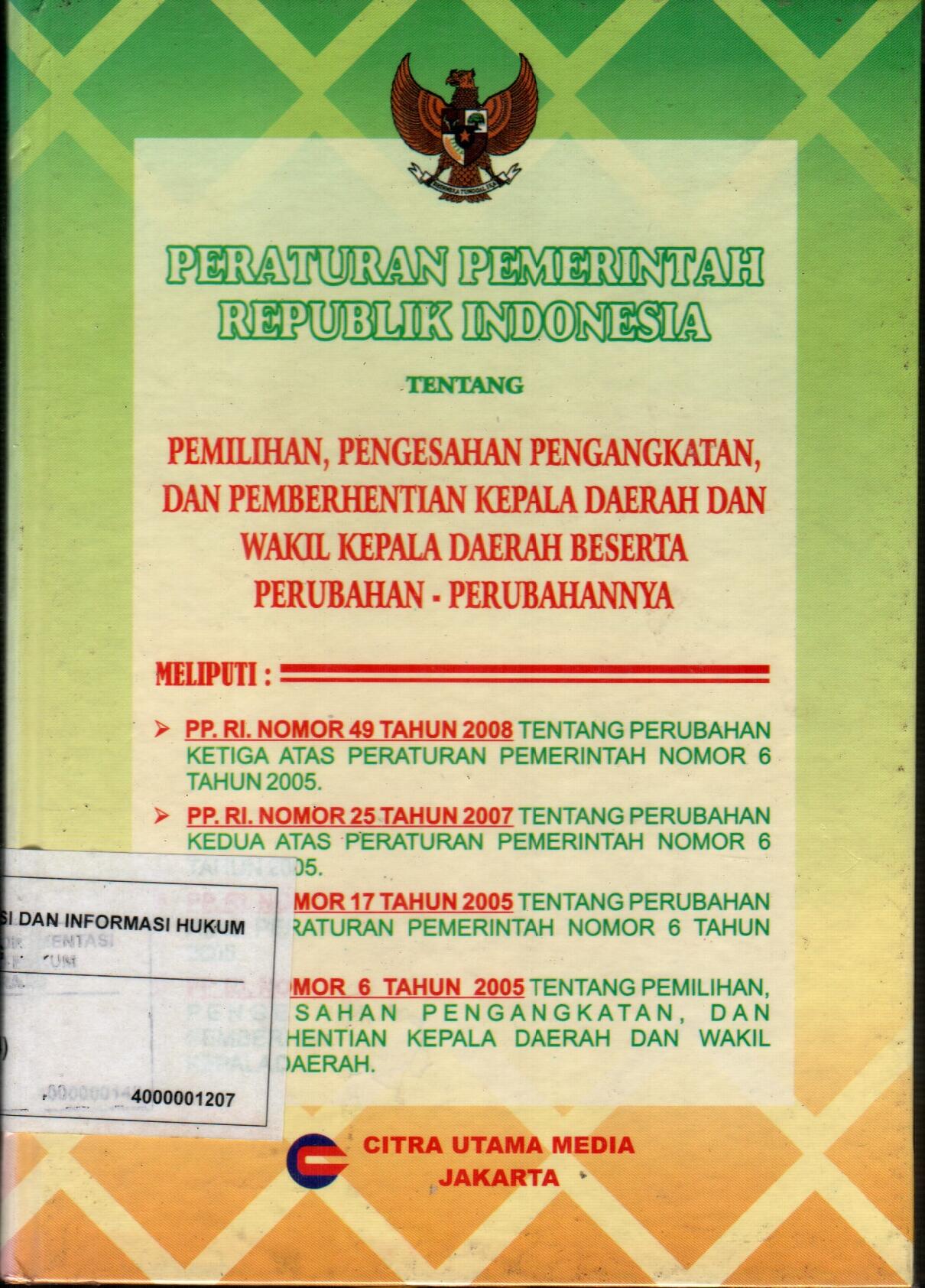 Peraturan Pemerintah Republik Indonesia Tentang Pemilihan, Pengesahan, Pengangkatan, Dan Pemberhentian Kepala Daerah Dan Wakil Kepala Daerah Beserta Perubahan-Perubahannya