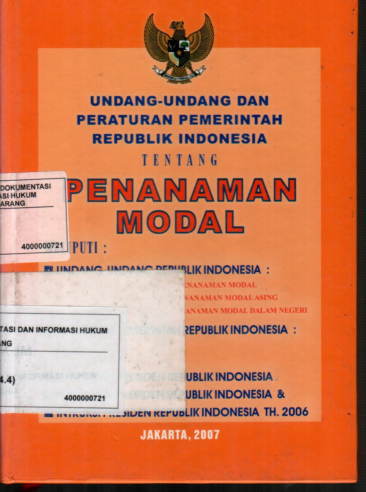 Undang-Undang Dan Peraturan Pemerintah Republik Indonesia Tentang Penanaman Modal