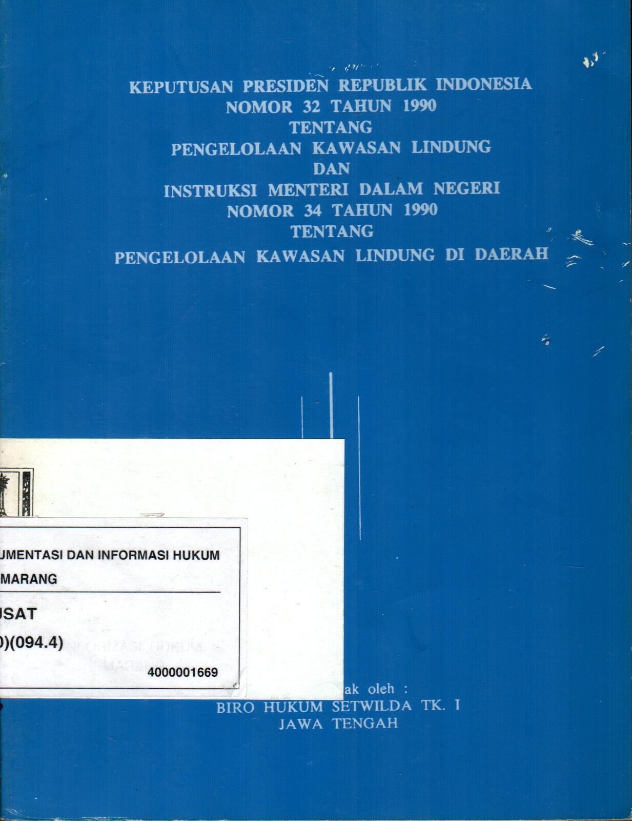 Keputusan Presiden Republik Indonesia Nomor 32 Tahun 1990 Tentang Pengeolaan Kawasan Lindung dan Instruksi Menteri Dalam Negeri Nomor 34 Tahun 1990 Tentang Pengelolaan Kawasan Lindung di Daerah